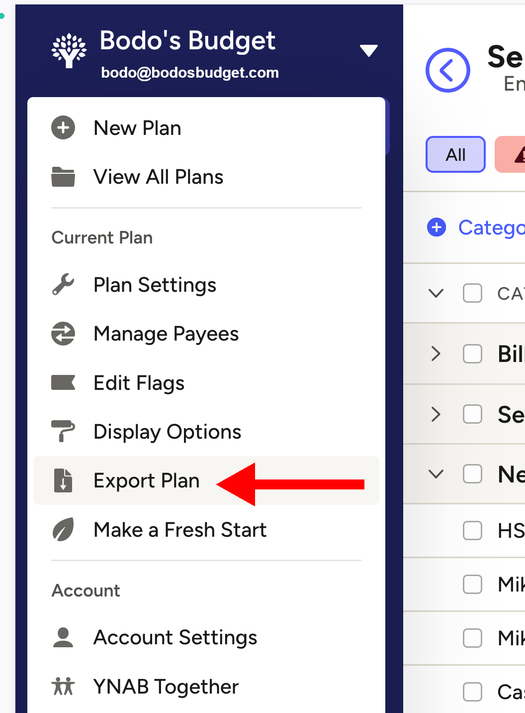| Abbildung 1: Ynab erlaubt den Export aller erfassten Daten ... |