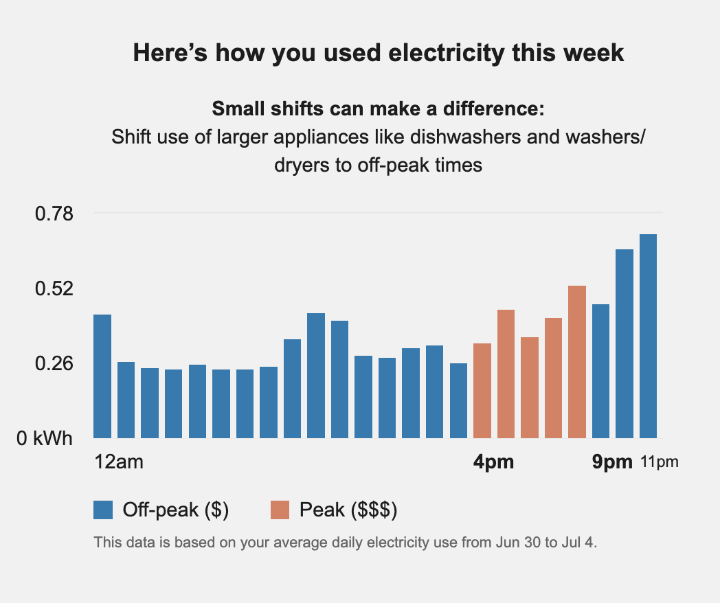 Außerdem richtet sich der Strompreis bei meinem Energieversorger Pacific Gas & Electric nach der Uhrzeit (Abbildung 1), da eröffnet eine zeitliche Aufschlüsselung des Verbrauchs bestimmter Geräte womöglich Einsparpotential.