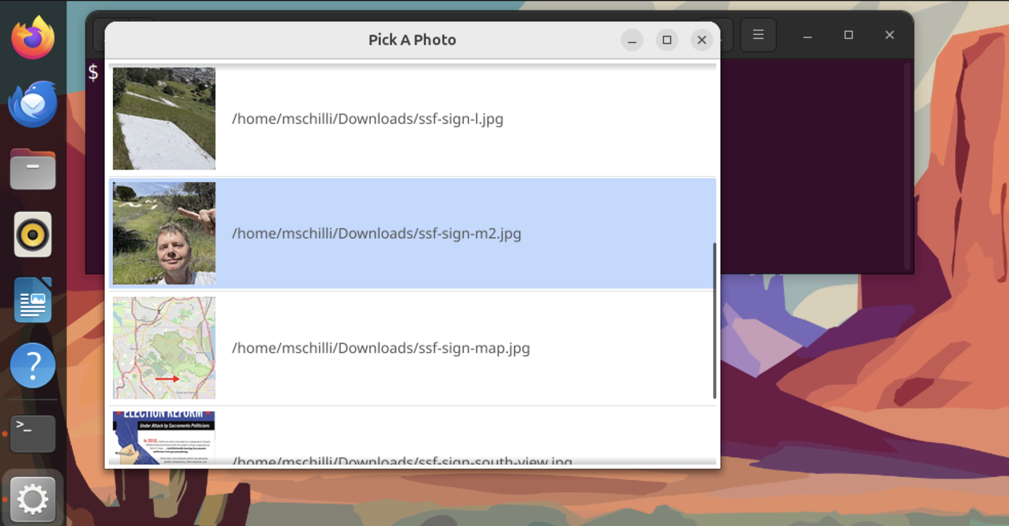 verbirgt. Ein Bild sagt mehr als tausend Worte! Eine Terminal-UI kann keine Bilder anzeigen, aber eine Fyne-GUI in einem zusätzlich hochschnellenden Applikationsfenster schon. Und den Pfad eines dort ausgewählten Fotos kann die Shell ebenfalls in den aktuell bearbeiteten Kommandozeilenpuffer einfügen, also frisch ans Werk!